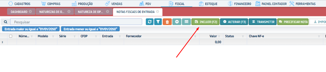 1- Cadastrar o CFOP (Fiscal → Outros → Natureza de operação Fiscal) de forma inversa aos que constam na NF-e a ser estornada:
