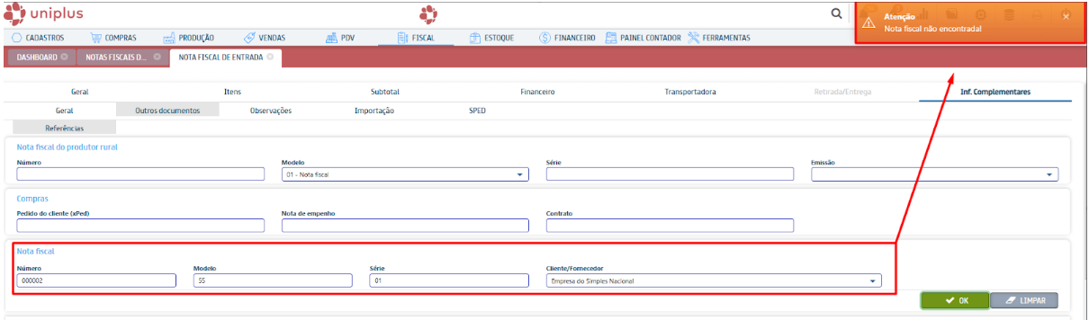 As informações devem ser idênticas a da nota de saída, caso contrário, irá retornar essa mensagem: