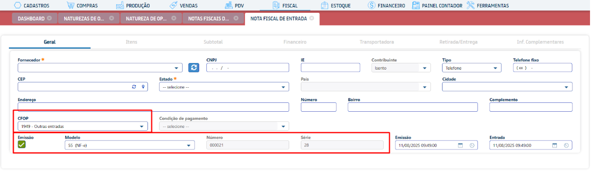 5- Informe o motivo do estorno nas Informações Adicionais de Interesse do fisco em: Informações Complementares → Geral → Informações adicionais de interesse do fisco: